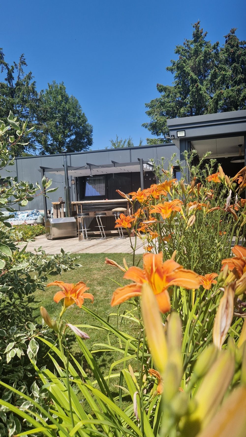 - Table de jardin (4 places) et canapé de relaxation pour profiter pleinement du calme et de la nature.