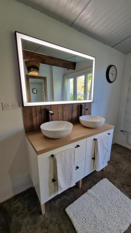 - Doubles vasques avec miroir chauffant 3 couleurs / 4 grands tiroirs de rangement